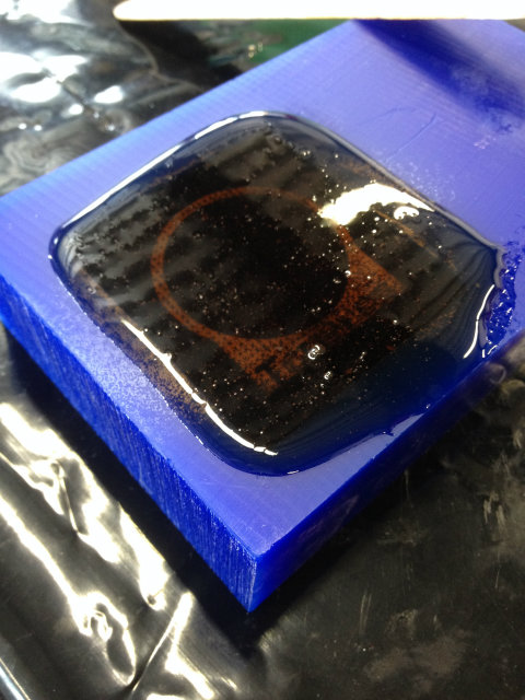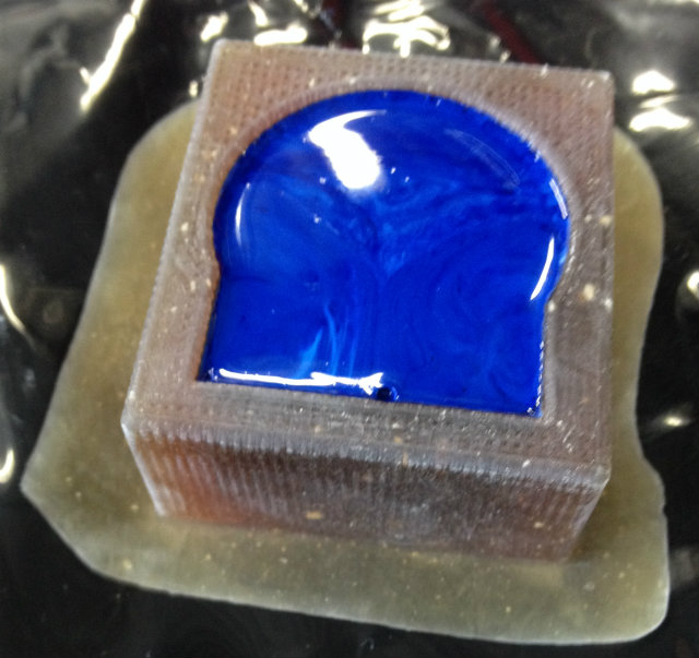Both parts were mixed, blue colorant was added to give it better appearance, and it was poured to the mold.