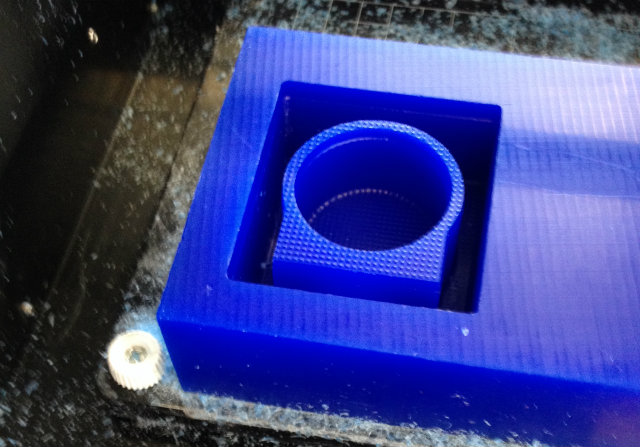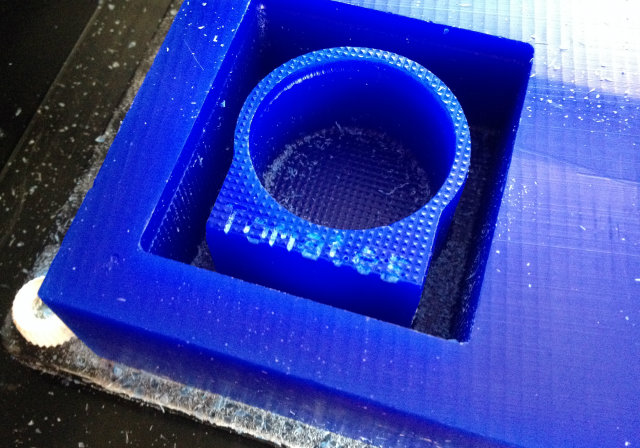 The design was milled in the modela to get the inverse of the mold in a block of wax. To correctly process it with the modela, I needed to create 3 different .rml files and process the independently in the Modela: