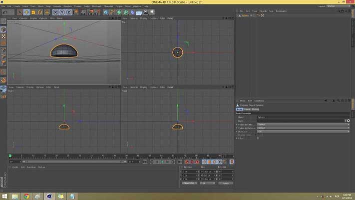 Move the deformer down by 150 cm to get where we want. If you rotate your viewport and look right under your object you'll notice that now it is convex because of the deformer movement you just applied.