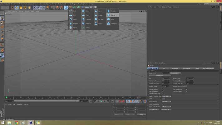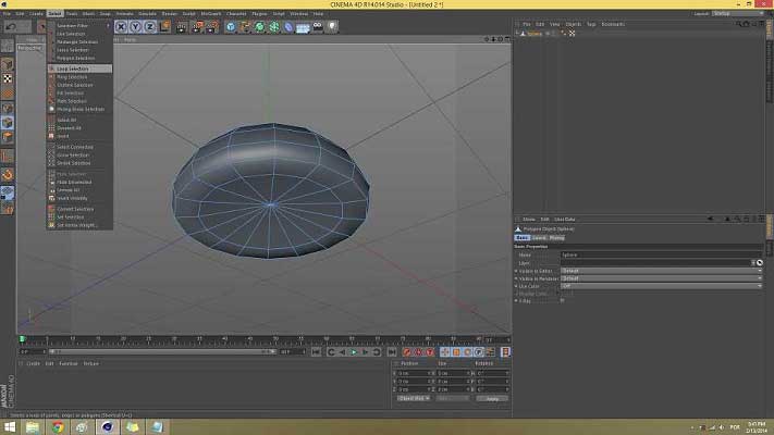 Now on the top toolbar select the Objects menu (or the cube icon) and under objects select Sphere. On the right hand corner of your screen, under object properties, change the value of segments to 16.