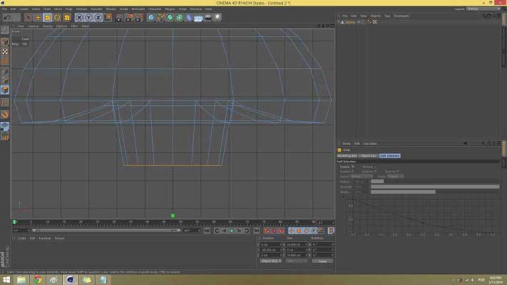 Go to your Front viewport and scale it down once more about 197 %. After that, under the viewport on the right side, you can see the Position, Size and Rotation tables of the current object. Under Size, zero out the Y row. Now you have the base of your object parallel to the ground.