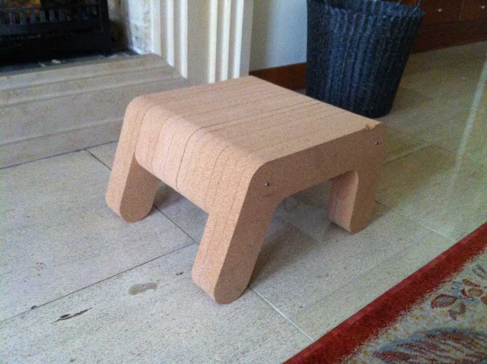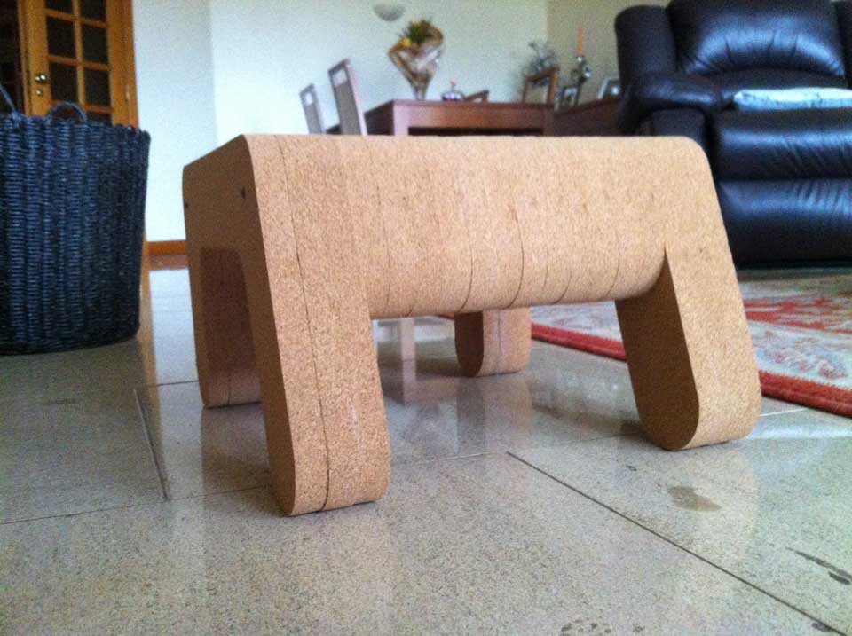Since everyone were using wood for their projects I thought that making use of some cork I had at home, could be the difference I was looking for, the material. But what was I going to do? I thought of my mother and her love for stools, and so I designed something that would be helpful to her when she wants to rest her feet or sit near the fireplace where she likes to smoke her cigarrete, or simply help her reaching higher heights, like the kitchen's top cabinets.