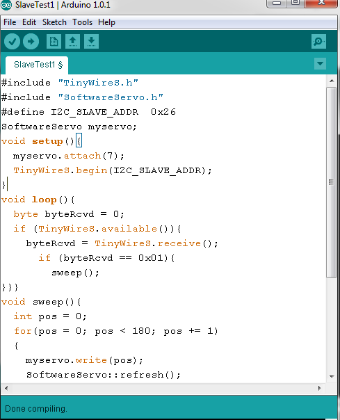 Reading up on the attiny MCU they do support I2C but the arduino IDE is still not100% in support of these New Cores so the awsome guys at the HIGH Low Tech Websit Refranced the TinyWire Lib and after a bit of reading i downloaded the libraryis but they where not compiling in the code i wrote because of the following :