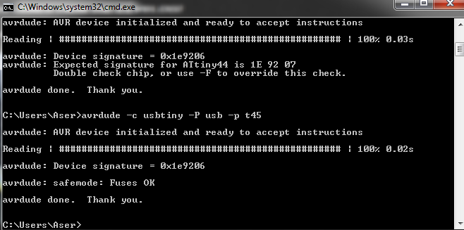 Now Comes the test of truth: avrdude -c usbtiny -P usb -p t44