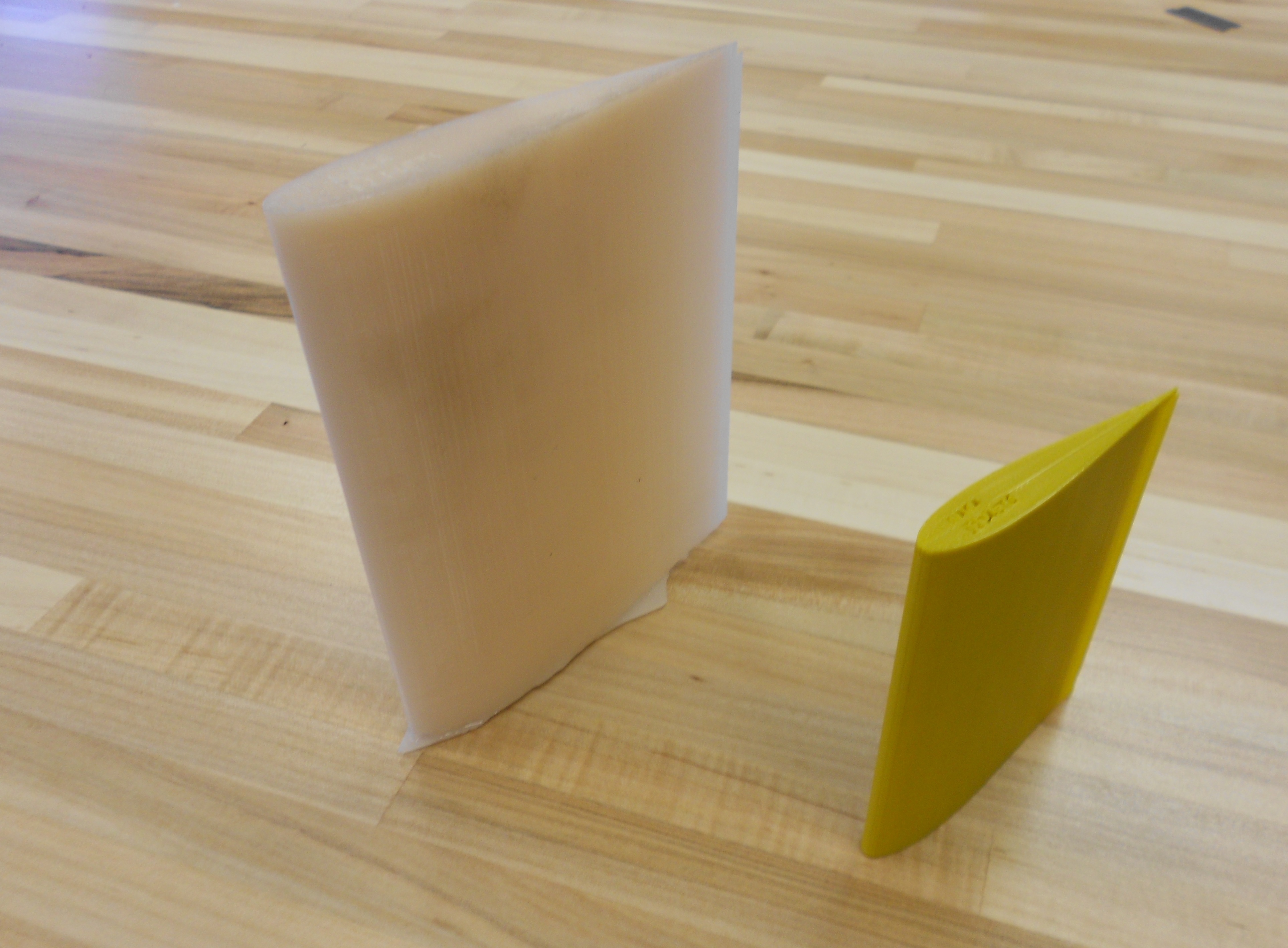 3D Scanning and Printing Along with the Aerospace Technology teacher, we designed an air foil on Autodest Inventor. Below you will find two pictures of the airfoil in Inventor that would later be 3D printed. ![]() ![]() There are a variety of printers on the market that offer that offer a wide range of capabilites. Our lab is fortunate to have three different brands of 3D printers; Projet 1500, Stratasys and Makerbot. I chose to do my prints on the Projet 1500 and Makerbot. The first picture below left is the Projet 1500. This machine is a pricey machine that uses VisiJet plastic material. The build plate is lowered into a tray of liquid plastic material as the image is project up to the plate for several seconds. Once the image stops projecting the build plate raises up while more VisiJet material is put on the tray. This process will continue for each layer of part. When all said and done the whole process had over 400 layers, took 12 hours to complete and used alot of plastic material. This unit is a one material process so it can not produce moveable parts. The second picture is the same airfoil scaled down half the size using the Makerbot. Makerbot is a economical friendly 3D printer that doesn't have all the bells and whistles but produces quality parts. To import the air foil into the Makerbot I needed to install Makerware, which is a open source software. Makerware easily lets you manipulate the file to your particular needs. Start up took only minutes and the machine was making the model in no time. Total build time was a little over an hour. ![]() ![]() The two picture below show finished product. The white air foil was produced by the Project and the yellow air foil by the Makerbot. ![]() For the 3D scanning portion of the unit I used the Roland LPX-60 and scanned King chess piece. ![]() ![]() |