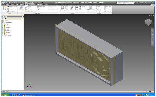 Molding and Casting My plan for the molding and casting unit was to design a FabLab logo, machine it out of machinable wax and cast it using plaster. To start, I used Autodesk Inventor to design the logo using a block of wax that is 3 x 7 inches. I would mill out a pocket 1/4 inch in depth leaving 1/4 of an inch on the outside wall so the plaster would not run off the edges. The text and logo would be inside the pocket and be milled 1/4 of an inch below the pocket. When finished designing in Inventor, I found it very easy to import the part into MasterCam. Once in MasterCam, my letters seemed to be a bit complex so I made a few changes as you can see in the second image. ![]() ![]() Creating the G code and machining went very smooth. I proceeded to mix the plaster and cast the mold as you can see from the images below. ![]() ![]() I let the plaster cure for 24 hours before I attempted to work with it. I new there was a problem when I went to take the cast out of the mold. Tapping on the mold with a hammer and prying using a screw driver still would not release the cast from the mold. Only after breaking off chunks of plaster would the cast come out while only saving a small chunk of logo. There were several lessons learned from this first cast. First, letters or graphic can not be 90 degrees to the mold, a slight chamfer helps the cast seperate from the mold. Second, creating the pocket for the plaster to settle creates a bigger head ache when trying to take out the cast. Third, a release agent prevents the plaster from sticking to the mold. ![]() I went back to MasterCam and made a few changes. Instead of using an end mill I used a 90 degree engraving bit so the logo and letters would come out of the mold easier. I eliminated the 1/4 inch pocket and created a tempary box around the wax using cardboard and duck tape. I coated the entire mold with dish soap before poring. As you can see from the images below the cast did work. ![]() ![]() |