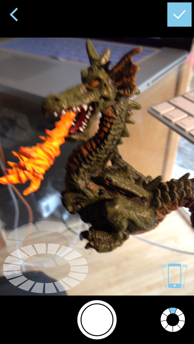 3D scanning was an adventure into Autodesk's 123D Catch. I loaded the application on to my iPhone 5 and searched for something to scan. This application is free and relies on a server farm to process images you feed it from your phone. The process can take from minutes to hours and is a quick way to get some interesting results. It should be noted that this system can be inaccurate in the details, but gives some amazing and startling captures. The application walks you through the process and uses the phones sensors to detect which orientations you need and are on as you circle the subject. I used about 35 photos for this dragon.