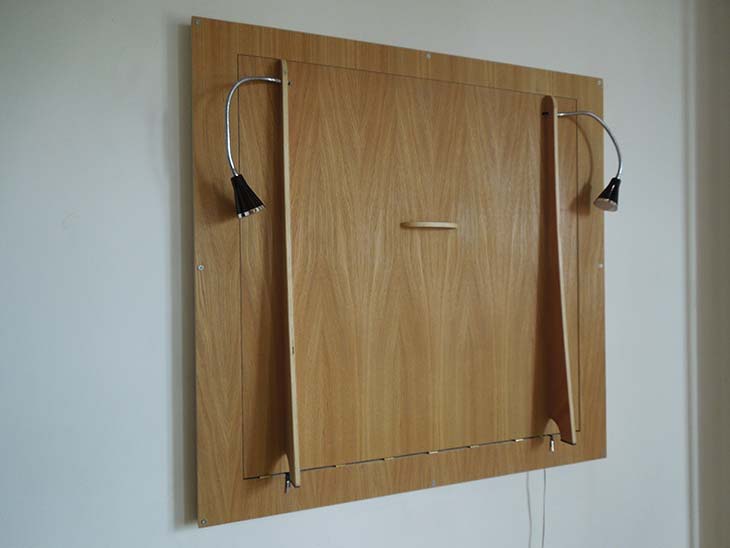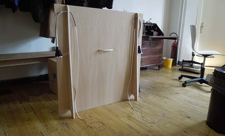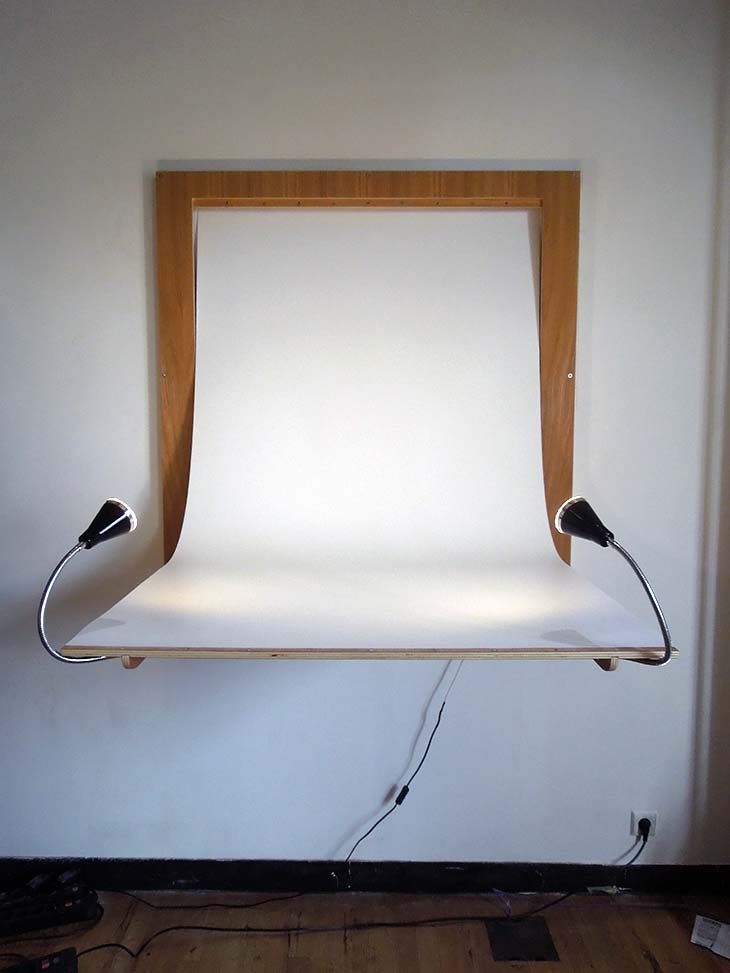 For the Fablab in Amsterdam we wanted to create a solution for the lack of documentation done by the people who visit on the open-days. Often the quality and explanation of their project wasn't fulfilling our need to share knowledge with everyone visiting the Fablab and the website. This is why we came up with “The fab photo studio”. The studio is an object that one can hang on the wall and expand to take aesthetic pleasing photos. The photo studio has an thin sheet of polypropylene at the back so you can really have a product kind of photograph.