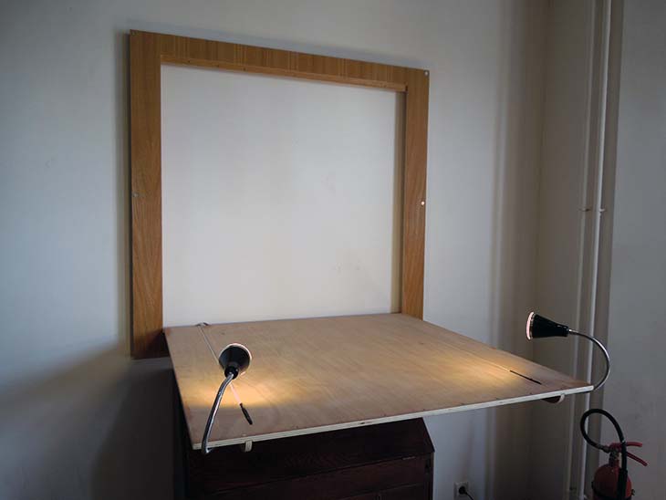Screw the photo studio onto the wall make sure the hight is alright by testing it with the platform open.
