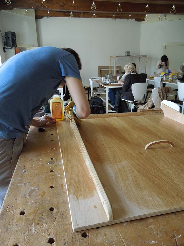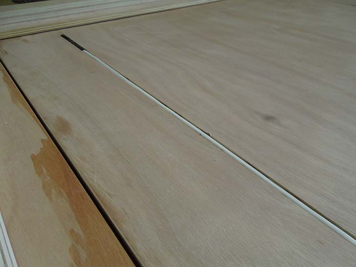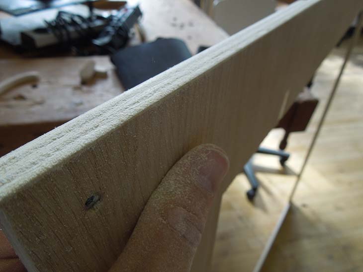 Drill the holes for attaching the panel to the sacrificial layer. And attach to the sacrificial layer, we used chipboard screws.