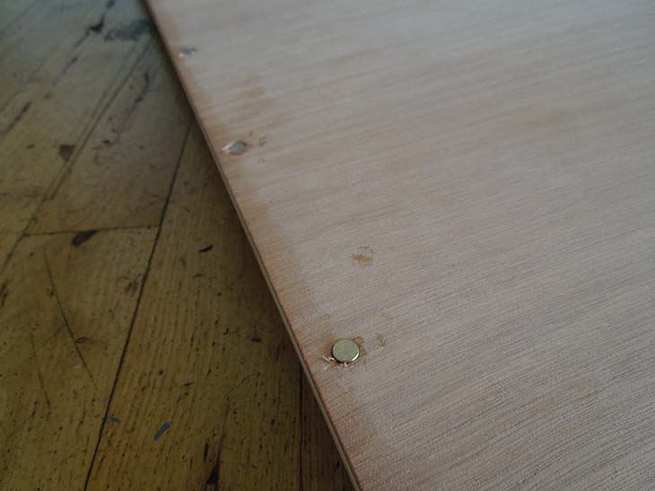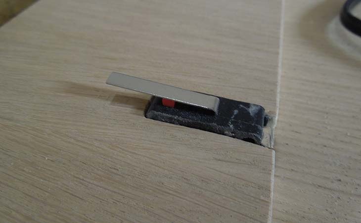 Connect the magnets for the platform onto the ones of the frame you will have stacks of two. Press the platform onto the stacks, this creates an indication where to drill the holes for the magnets. Drill, apply glue and insert magnets again, pay attention to the direction. Let the glue dry and test.