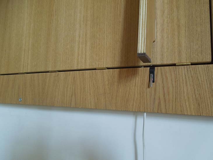 8)Insert the microswitch in the vertical pocket and bend the pads inwards so the table can be properly close.