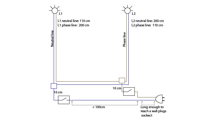 2)Following the length of the image, open and cut the electrical cabless of the two lamps.