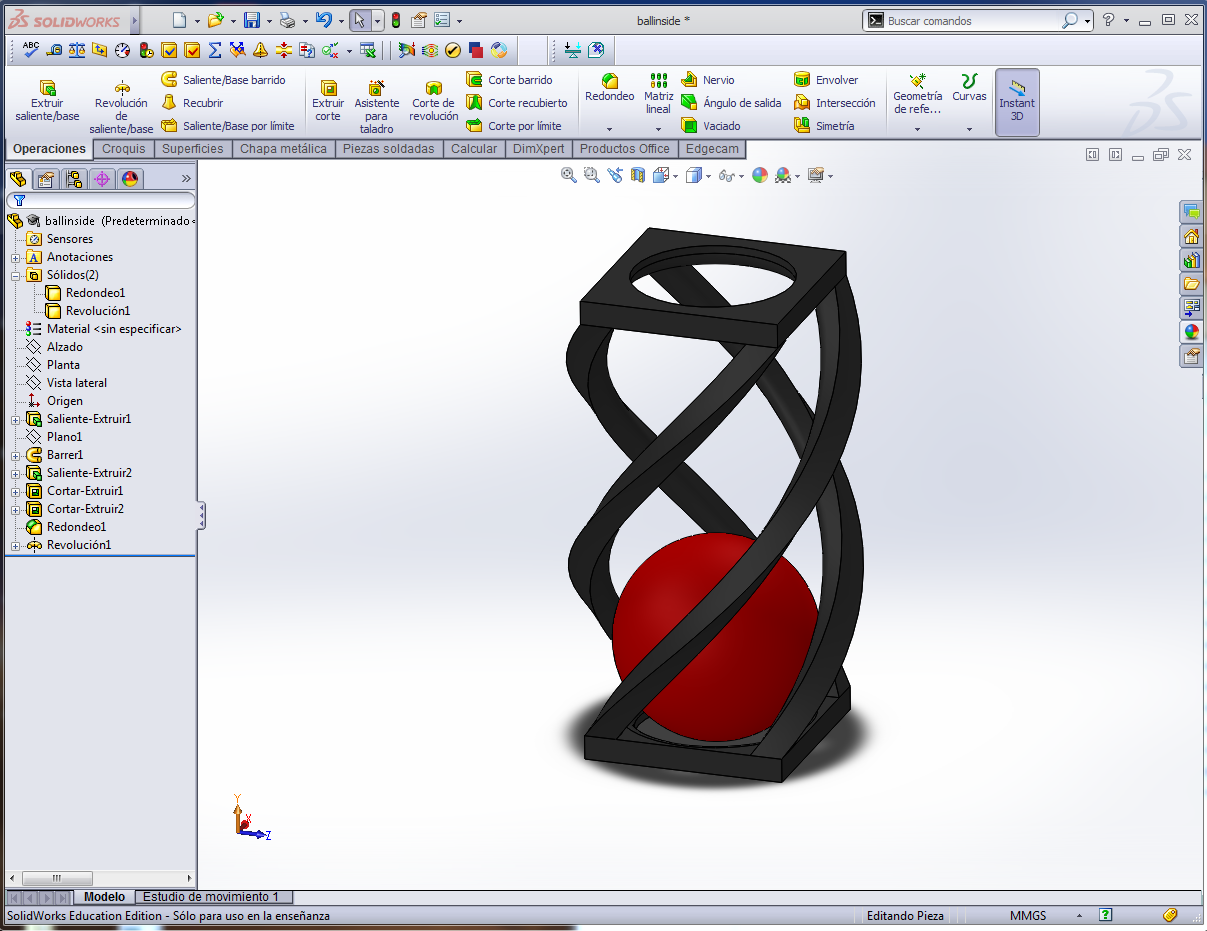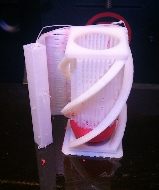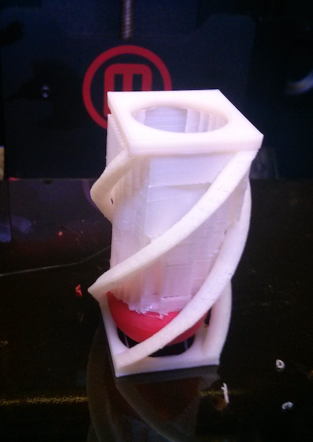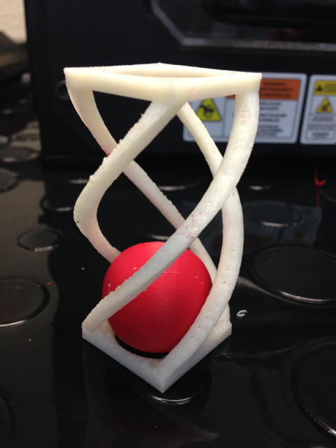 For this task a makerbot Replicator 2X was used. The object selected was my version of the popular object commonly known as "chained ball" which consists of a ball traped in a cage where it can move but it cannot escape.