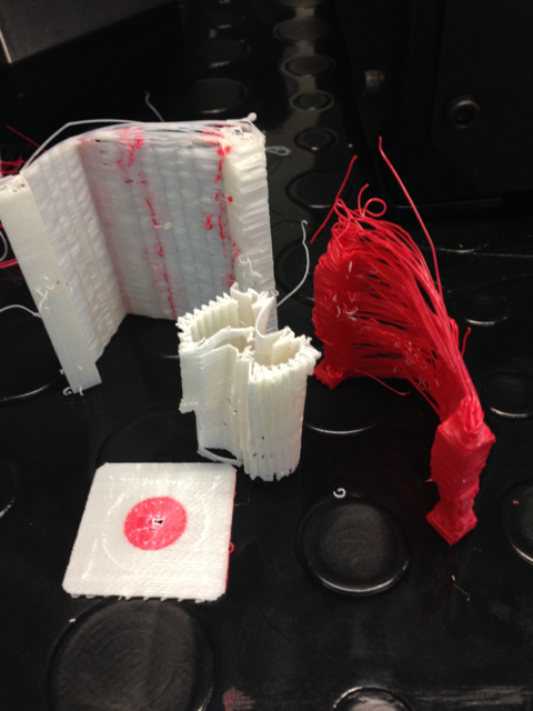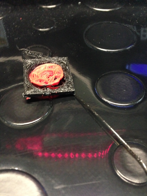 The next attempt was to print it directly. Two challenges appeared: first, when printing the ball without any support, the small base created by the first layer started moving while printing subsequent layers. This resulted in a crappy base that did not resemble a ball. Second, the extrusion of one of the materials stopped after a few layers and it was unclear what was happening.