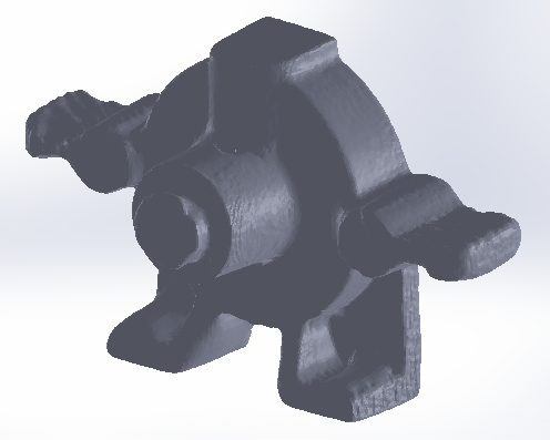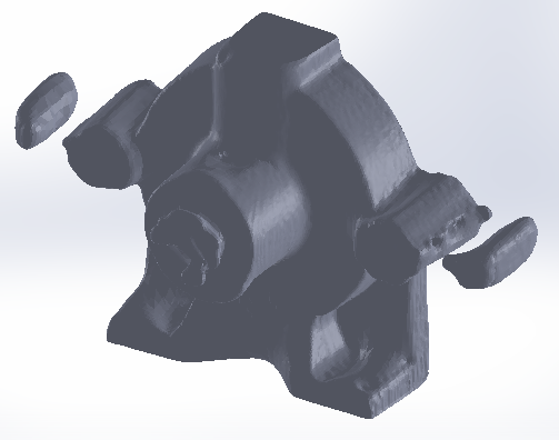 The first trial was problematic once again, the light reflected on the flaps produced discontinuities on the 3D model, and the dark section of the axis was not captured that well.