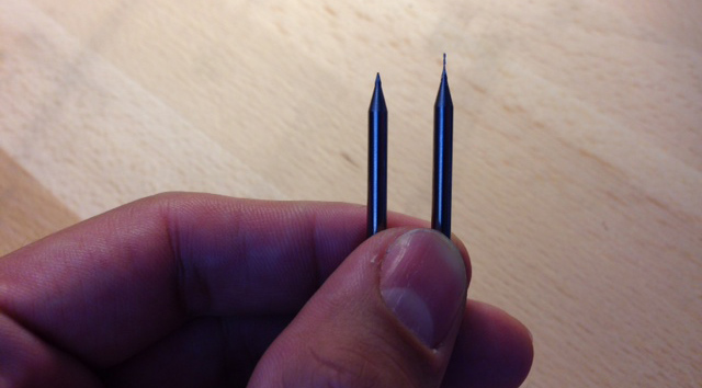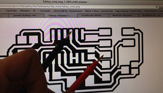 Finally when was milled already I changed the bit for 1/32” or 0.08mm and the cutting drawing with the Fab Modules. The final result was the expected.