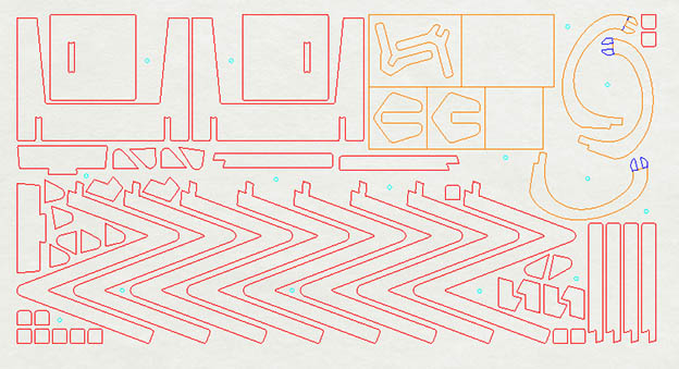 -Order on cutting files, is very important to know what you need to cut and how (internal - centre - external), what is pockets or what is 3D and what finish you need. Put the drawing on a clean file and draw your real cutting area leaving a small screw frame, then move it to 0,0. Divide your needs in layers and put them on different colors; add one extra layer for screw points, that will be the first task of the machine, and will help you to find where you need screw points that you already should have placed before on.