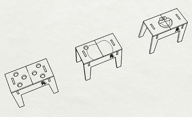 This stool will have seat tops like beers or coffee holders, chips bowl and kids patterns for play and draw so you can hack your favorite option.