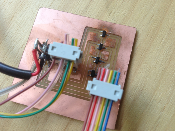 I initially found that some of the traces were slightly too close together, and so I edited the png in Photoshop to allow for enough space in between the lines. After a few attempts at milling, I finally made a good board.