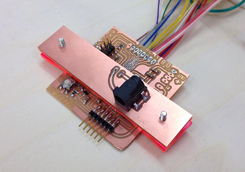 When I first plugged in my LEDs, just a few of them were working. I made some shortcuts and it burnt some LEDS. I also used Illustrator in order to mill 24 boards at the same time on the Roland MDX-20. But the traces were too thin on some boards.
