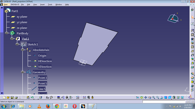 To see the 3D model of scketch one should get out of this scketcher mode using exit workbench will redirect to Part design mode,in part design mode apply PAD of 3mm(because i m going to cut these parts on Epilog Laser) so here i am applying PAD= 3mm.following figure 3. shows the actual 3d Part after PAD command.then we need to create slot using pocket command.Go to File menu then SAVE the part using .CATpart extension.