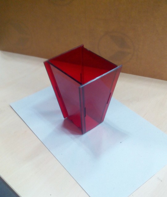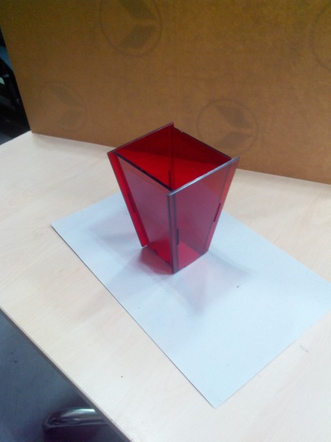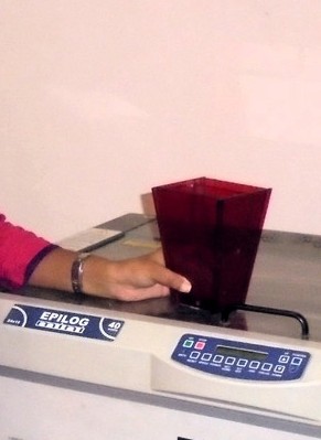 Epilog Laser is used to cut the parts. Acrylic transparent marron sheet of 3mm is used for hopper. Figure 2. shows the 2D parts of Acrylic.