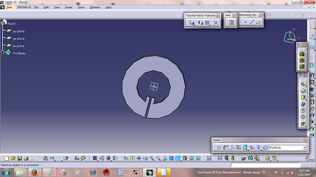 firstly Design this presfit foldable cardboard box. I am fabricating the cardboard Worm and sprocket gear. Here plan is to make foldable kit of worm-gear, it consist the box,Sprocket and worm, worm is driving sprocket which is mounted on cardboard shaft.Following few images are designed in CATIA.