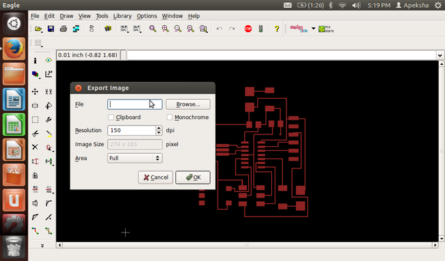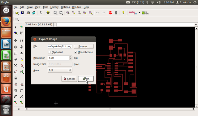 Step 11: Click on the file menu --> Export --> click image. child window will pop up. Select the destination where i can save the .png file, and resolution 500dpi,with monochrome setiing so it will invert image in black and white format.