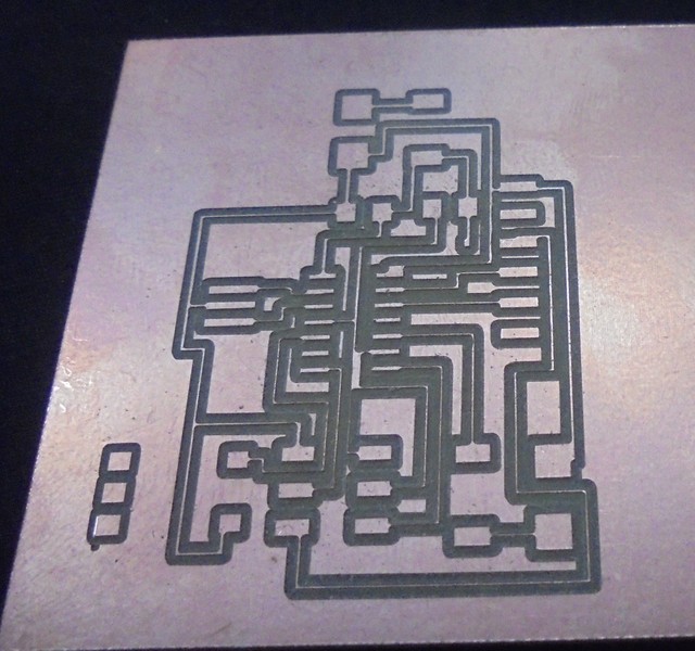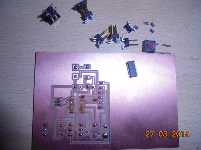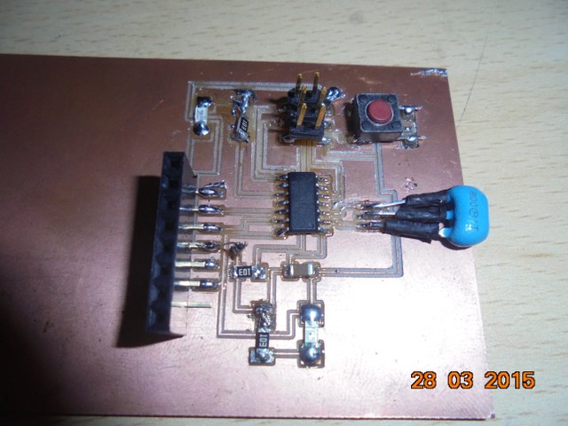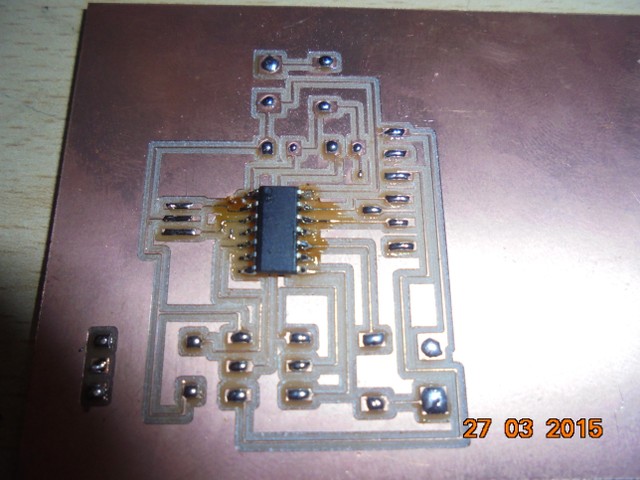 There is Short in two tracks in the middle of IC.I corrected and made other PCB but forgot to take picture of new PCB before soldering the IC.
