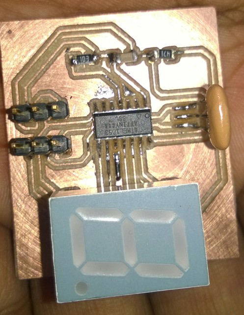 following image shows the soldered board and programmed with AVR studio and also used sinaprog to uplode program on Attiny44