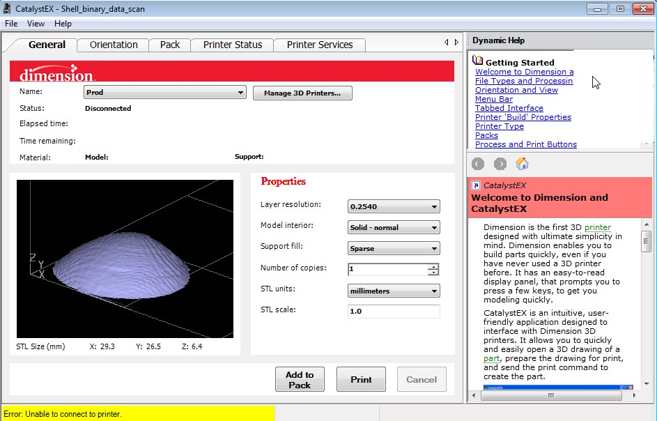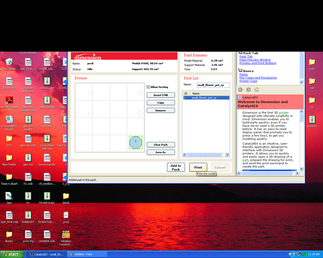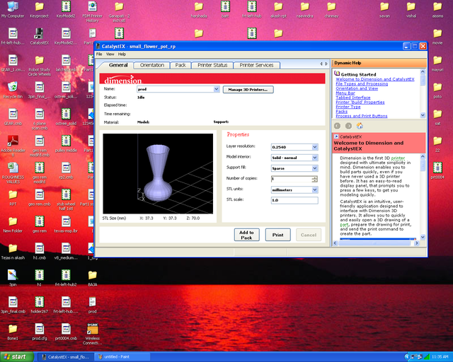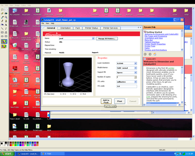 In rapid prototyping process i am using Fuse Deposition Technique to 3D print the object.It has windows based software CATALYST EX. It shows material require to print 3D object and available material in the machine.This Fuse deposition machine contains wireform ABS material.