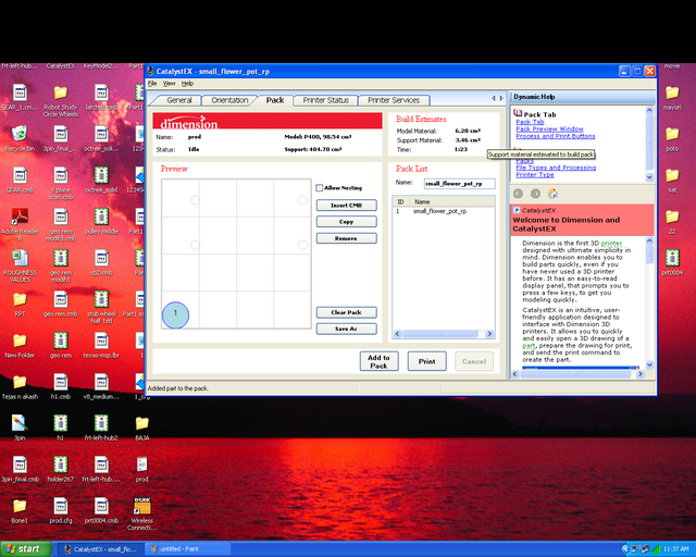 after adding the pack it show material required to print object and material for support red color is actual material and the purpal color is support material