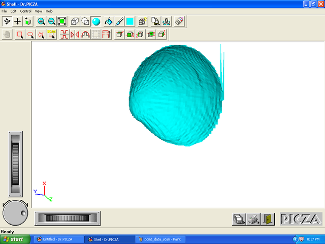 On beach i found shell and i am scanning Shell on the roland modela Scanner.I disconnected the milling spindle and connected contact type scanner.following Figure.15 shows the shell that i found
