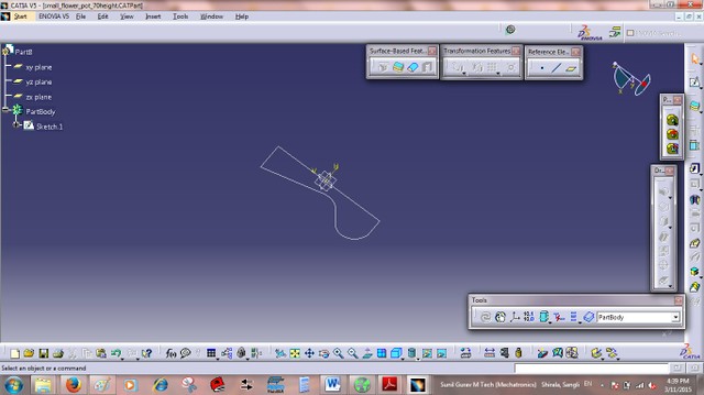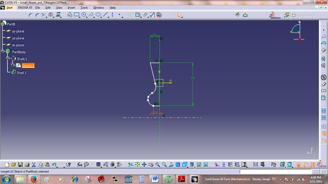 I decided to 3D print the flower pot model in Catia.Following figure showa the 2D sketch in sketcher mode with proper dimensions.