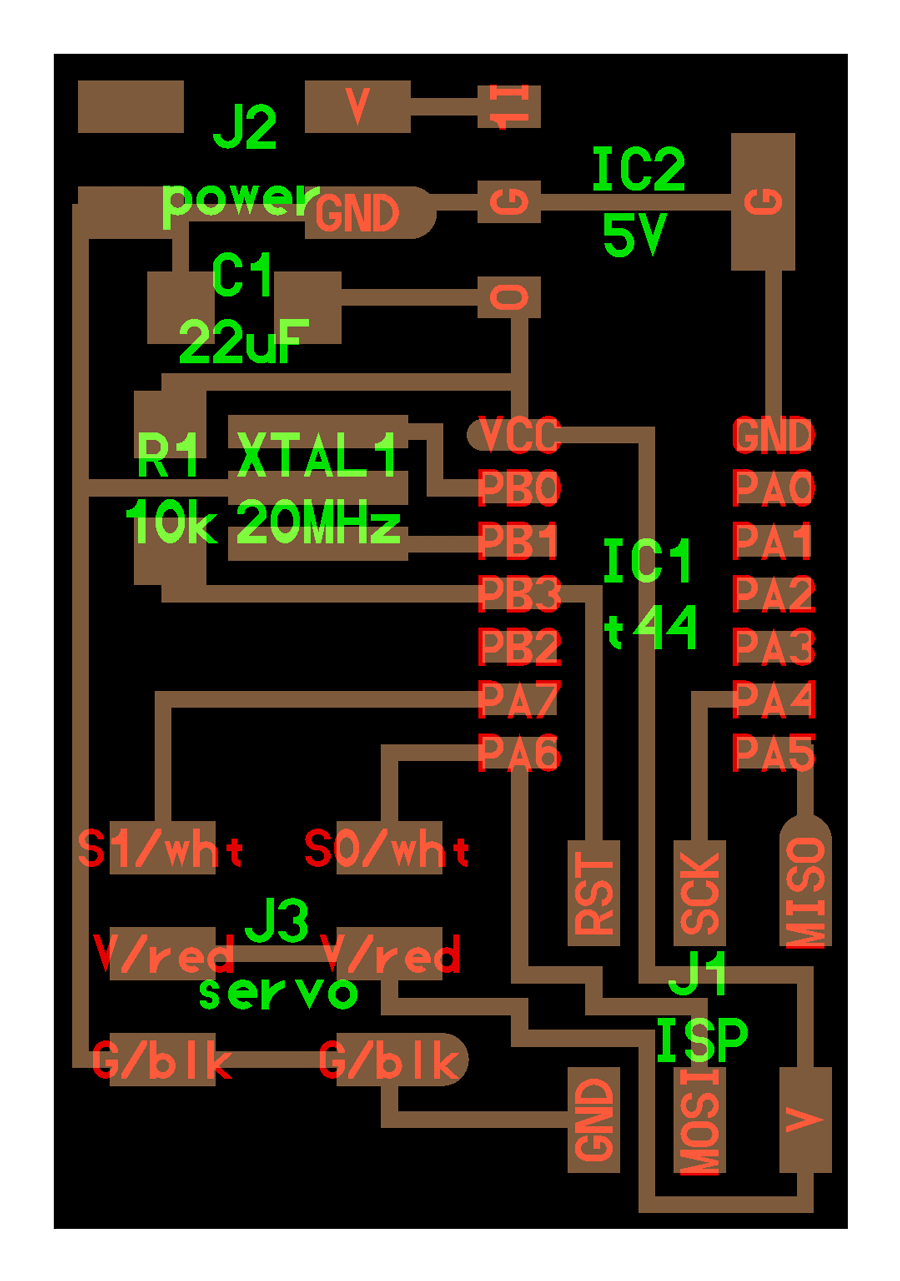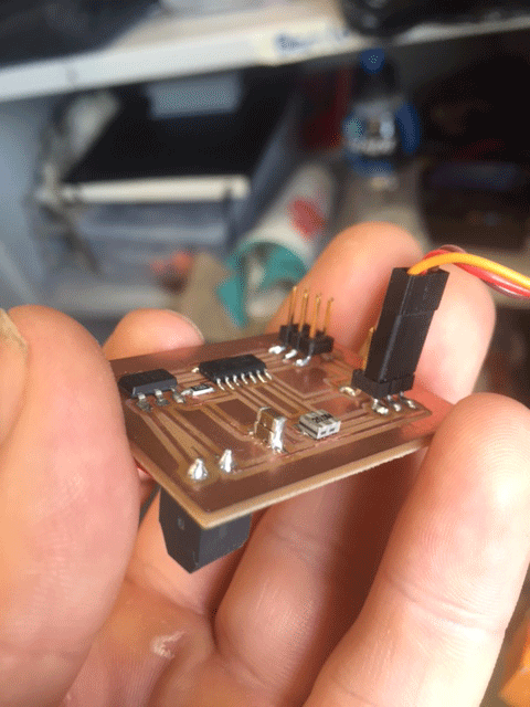 I felt like time was running out a little bit and that I was already behind on a few things. So I decided to make my own board where I would just use a servo motor, Jasmin had made a board working already using a servo and she has awesome information on her website about how she went about it.