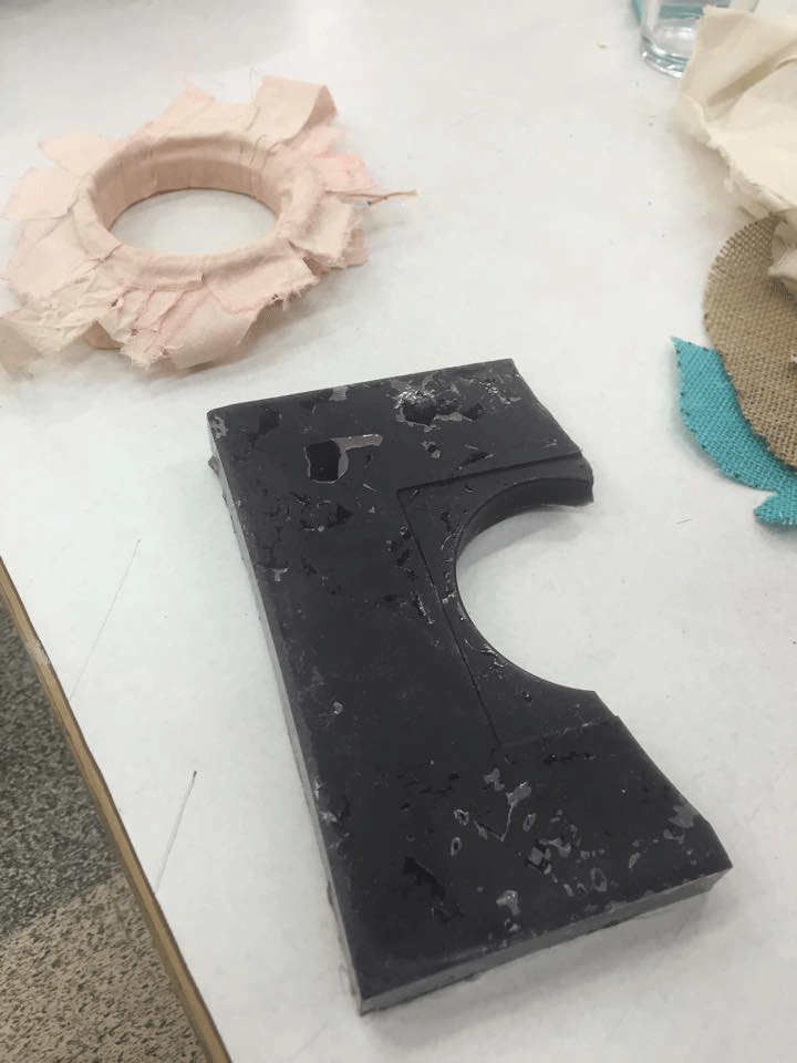 I melted up a suitable size wax block to use and hot glued this to the bed and followed a very similar process to my moulding and casting week!