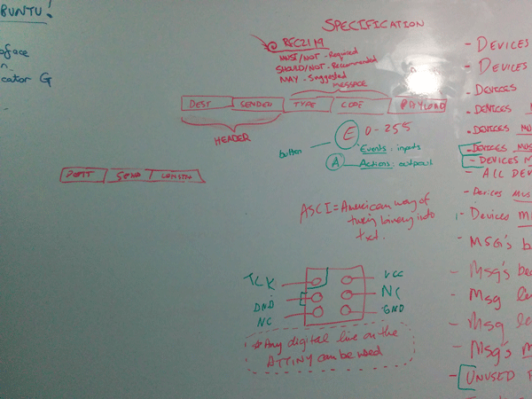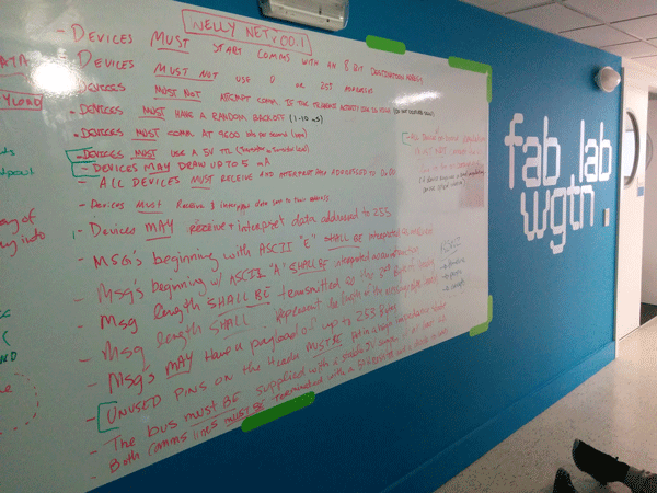 This week we began with a discussion in our Fab Lab Wellington group where we decided to try and make a serial bus network where we can all plug into the same network and where we could all use similar things that we made from output week as something to communicate with.