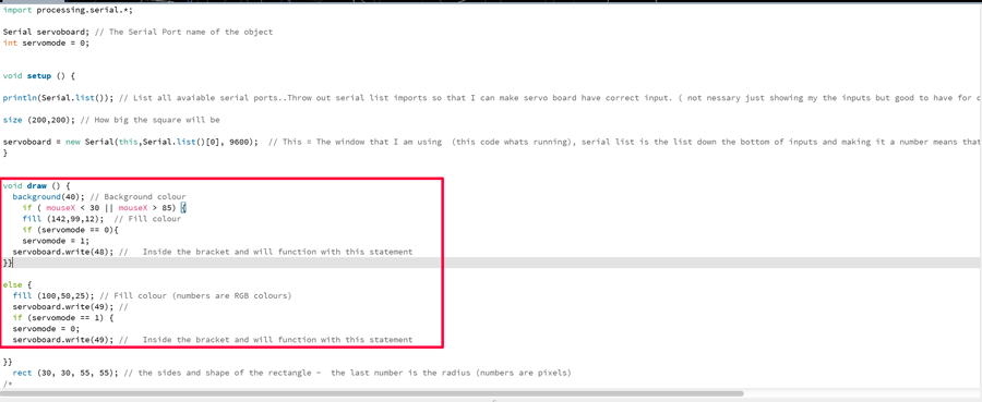 Zennas WebsiteI then copied her code over into processor and hit run and a nice little graph came up which was detecting the input of my slider which was awesome! Here is a little video showing you how it worked.
