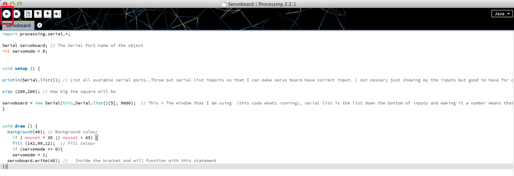 Processing DownloadThe first thing I noticed when I downloaded processing was that it looked very similar to Ardunio and this made me feel a lot more confident already.