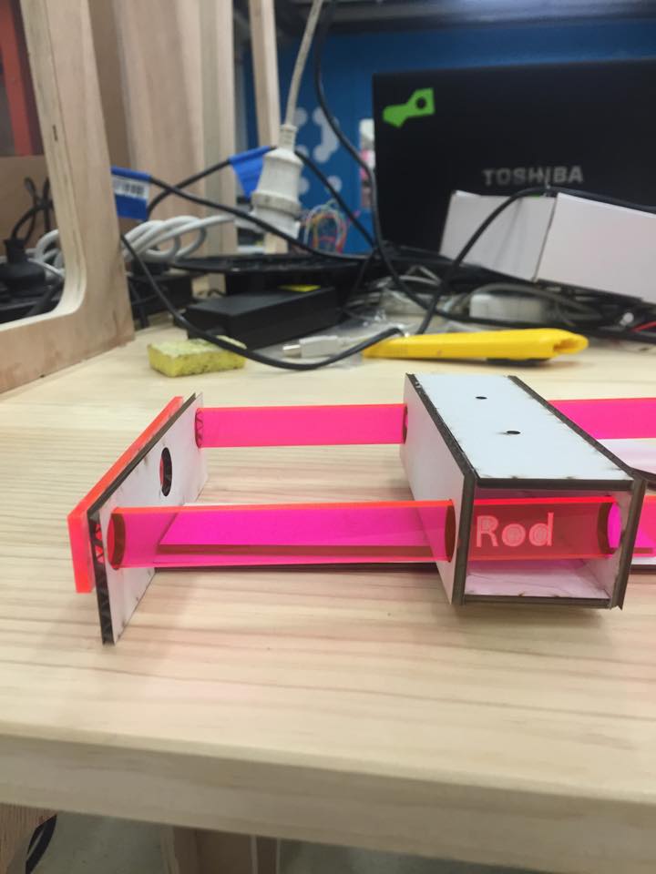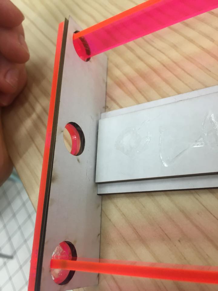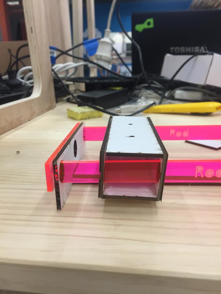 This poster is a draft that I did for our final presentation, I choose to use bright coloured acrylic so that it was visible for what I was creating and what I wanted my baseplate to do. This poster also shows a good comparison is size between how it would fit within the gimbal. The top photo is the poster shows quite clearly how I want the sliding movement to work, the wood had a bit of friction but I was planning to change this.