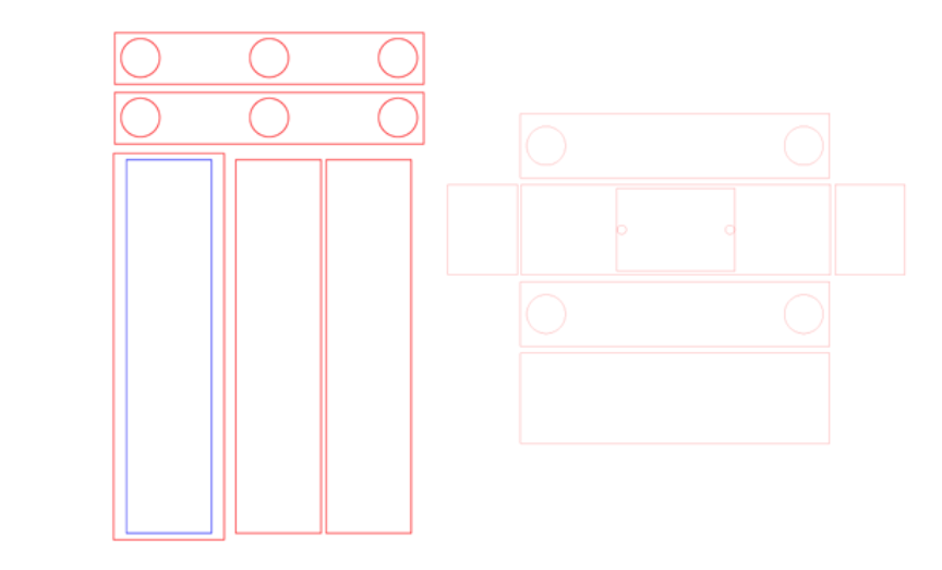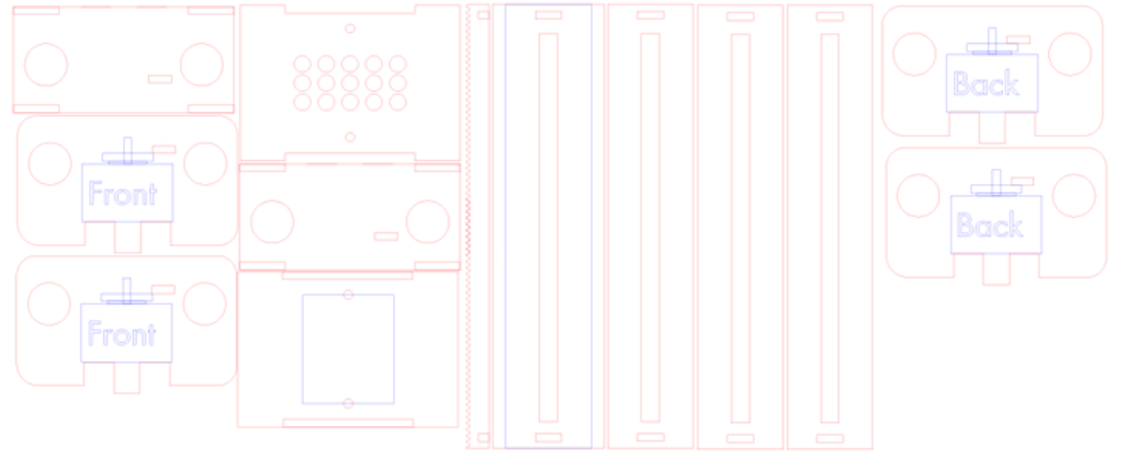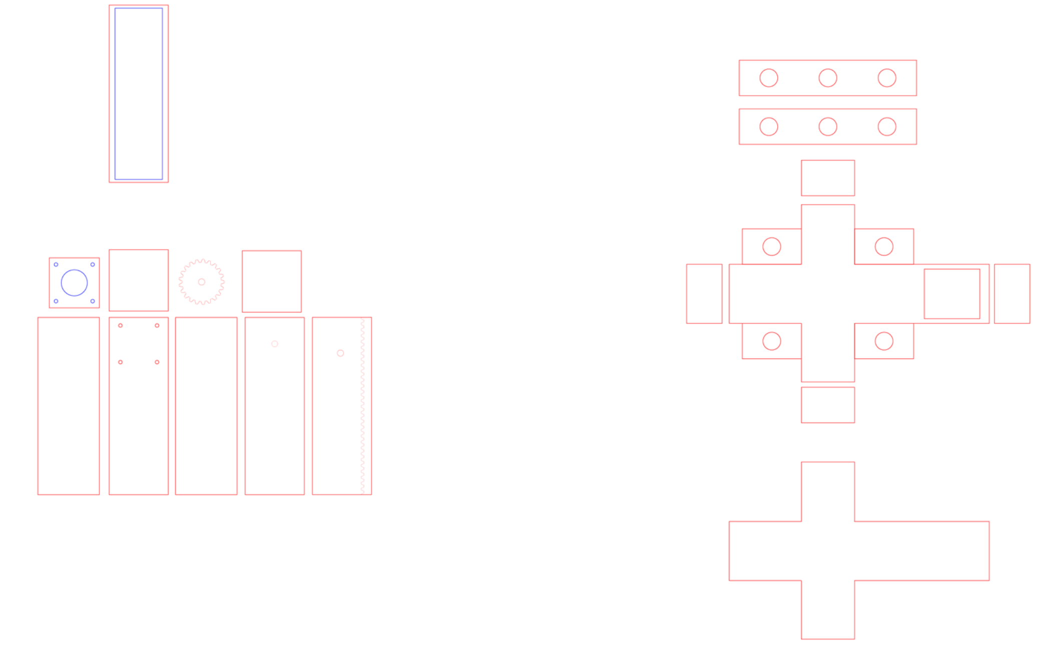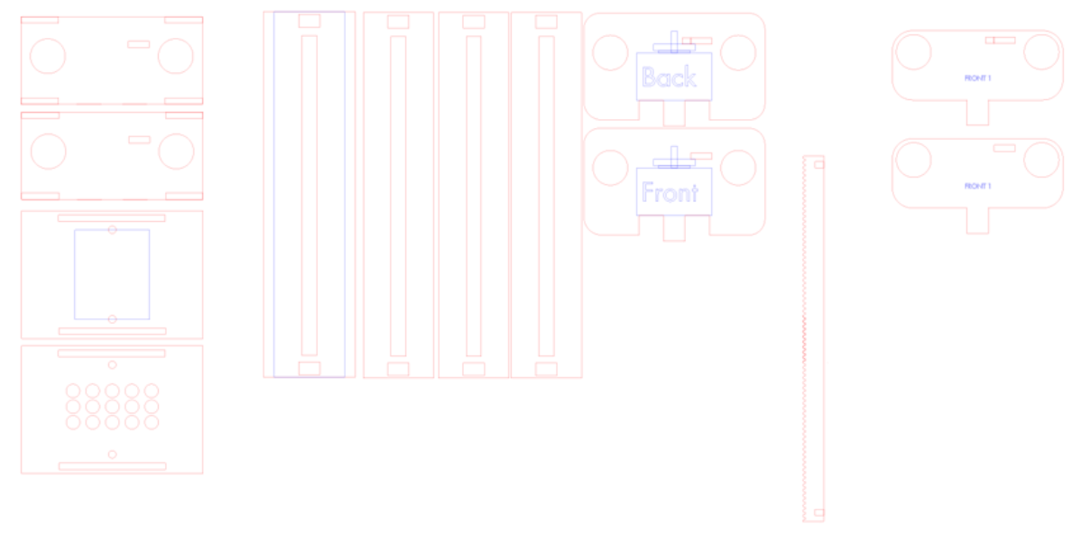 These were the final designs where it was very small tweaking to get things right, I had really small tolerances of 0.1 or less because I wanted things to be tight and fit correctly without any play. I tried to utilise the material as much as I could by nesting, I could have gone around some of the shapes and made it so that it was one cut for the outside of the shape rather than cutting of squares and something I will do for future production to save time in the laser cutter.