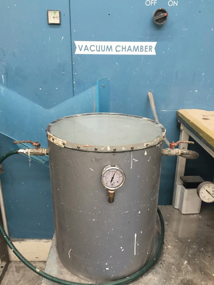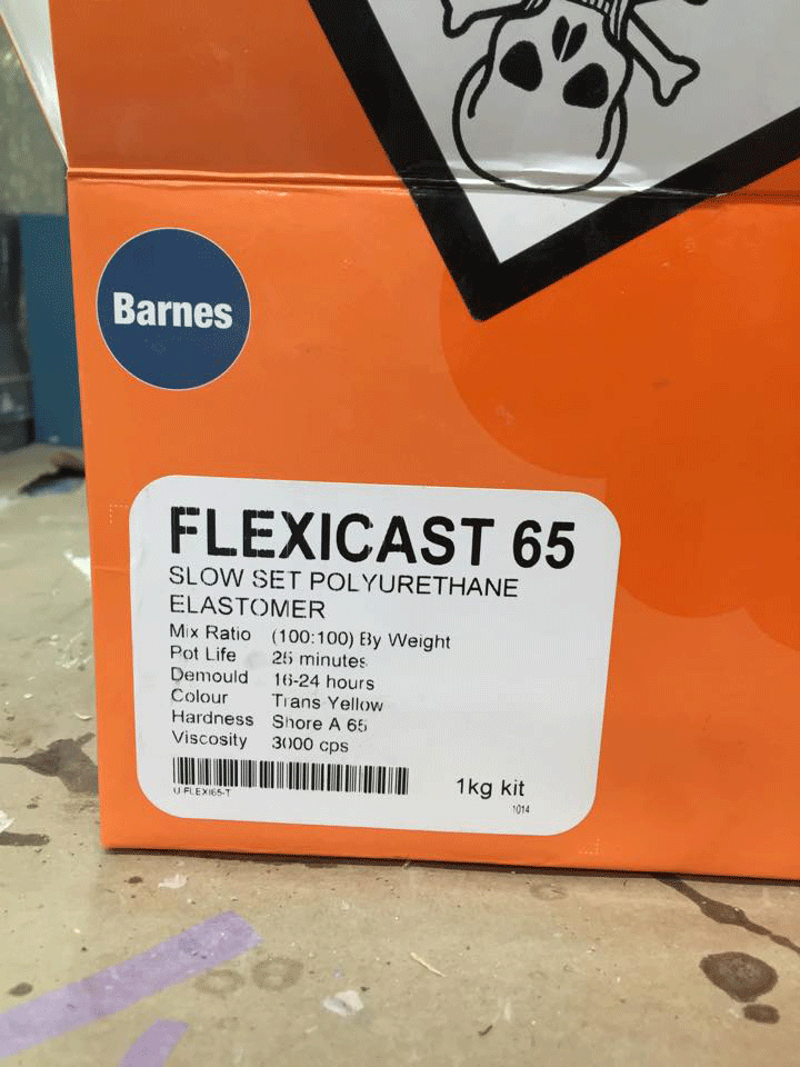 I then went into the 3D workshop where they had better extraction and Wendy recommended that I use a reasonable fast setting flexicast polyurethane and can refer to the photo for the pot life. I used this type below. It had a really easy ratio where I would mix up the same amount of A and B solution. I weighed this with scales and mixed it up in a little cup. I poured the mixture into the mould and then went and put it into the vacuum compression chamber to try and pull all the bubbles out of the mixture. It worked pretty well and was worth doing, I properly should have put the silicon in there before I poured it though.