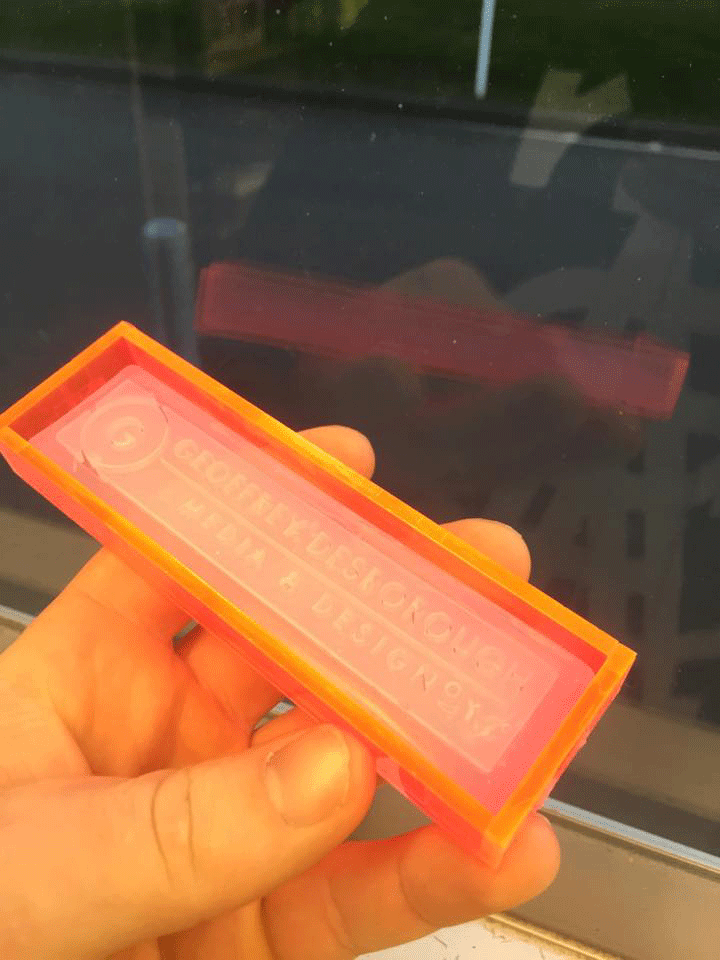 Stuart one of our tutors had made a simple Facebook like stamp which made me think about what I could make for a stamp. I had recently created a logo to put onto my website, I wanted to make this logo into a small stamp that I could use in my office for scrap paper and other things that I wanted to print onto.