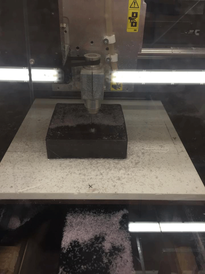 When then poured the liquid into an acrylic cast of a specific size to fit into the MDX-40 machine.