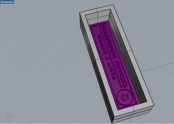 I created my logo in Indesign and put this into Illustrator and made it all vector paths and imported it into Rhino onto a rectangle that I created of my specific size.