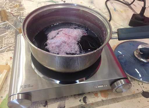 Wendy showed us how to melt down wax in a pot where we simply heated the wax and a medium to high range temp until it was a complete liquid with no bubbles in it.