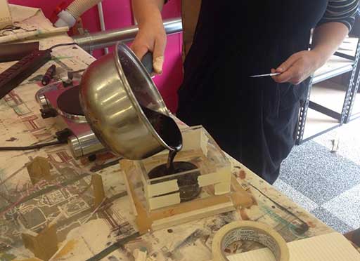 I mixed up some silicon with Jasmin on some scales where we roughly estimated how much both of us would need and we made enough for both our models. A good way to make sure you are going to have enough is to W x H x L and always add a little more as its better to have more than less. I just put a very thin layer of silicon into the bottom of mine as I had made it quite a deep cast in terms of the Z axis.