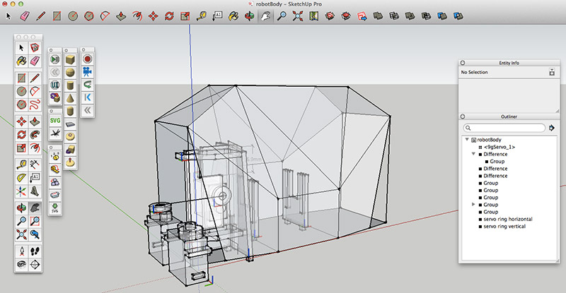 The design goal of body should have enough space for at least 2 curcuit boards and 2 servo motors. I create a 3D model to study the shape, space and mechanical structure.
