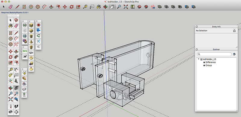 A plugin Flattery in sketchup is a nice tool to help unfold a 3D model to paper craft. Paper craft layout can be saved as SVG, but I should add some screw holes and latches manually in illustrator. The first prototype is shown below: